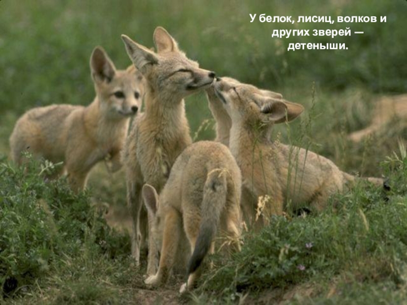 Слайд 17У белок, лисиц, волков и других зверей — детеныши.