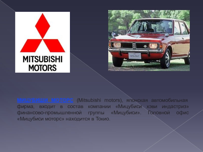 Слайд 19МИЦУБИШИ МОТОРС (Mitsubishi motors), японская автомобильная фирма, входит в состав
