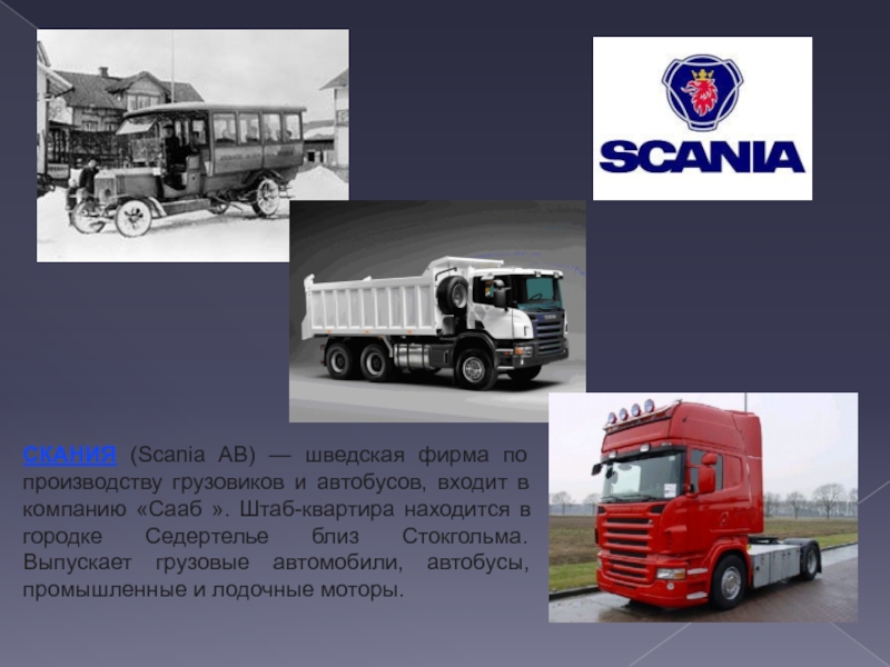 Слайд 28СКАНИЯ (Scania AB) — шведская фирма по производству грузовиков и