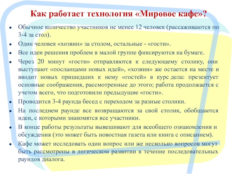 Как работает технология «Мировое кафе»?