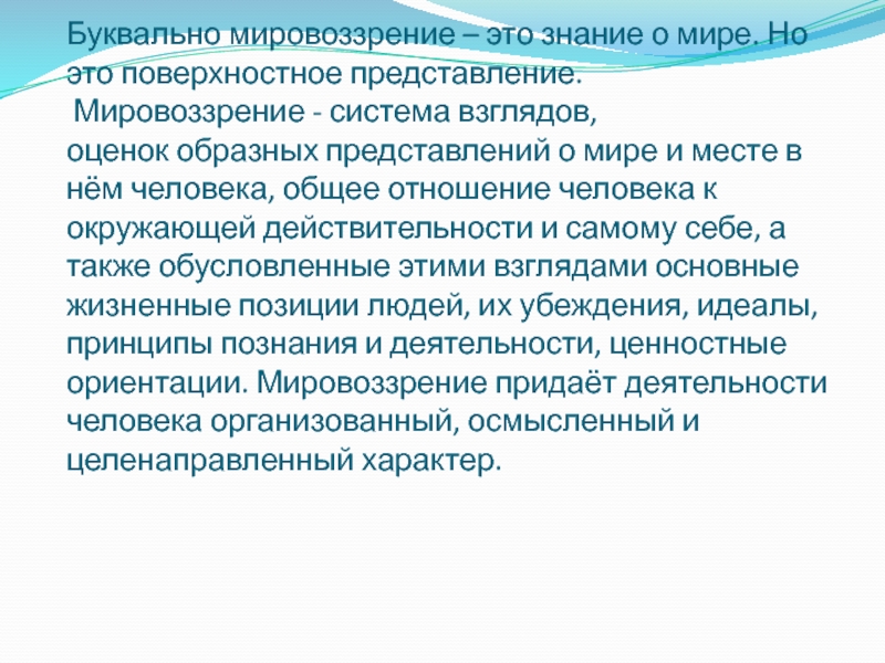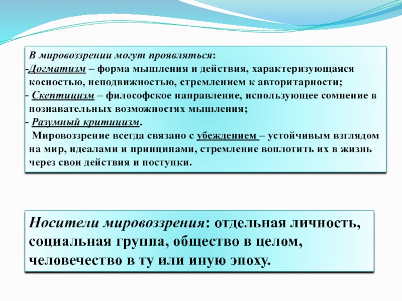 Носители мировоззрения: отдельная личность, социальная группа, общество в целом, человечество в ту или иную эпоху.