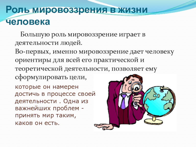 которые он намерен достичь в процессе своей деятельности . Одна из важнейших проблем - принять мир таким, каков он есть.