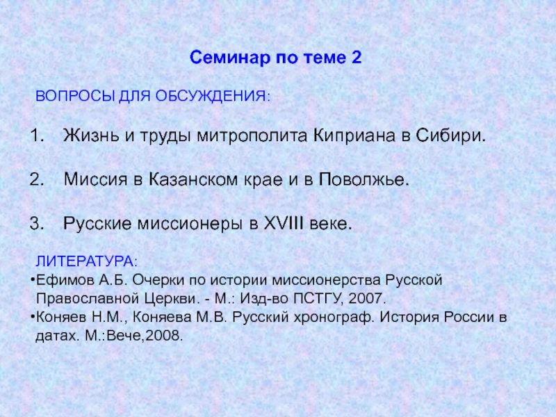Ефимов А.Б. Очерки по истории миссионерства Русской Православной Церкви. - М.: Изд-во ПСТГУ, 2007.