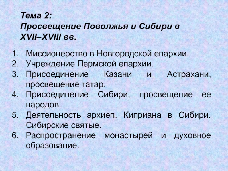 Просвещение Поволжья и Сибири в XVII–XVIII вв.