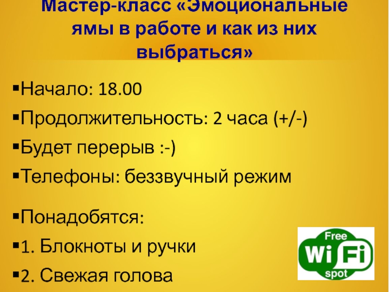 Слайд 2Мастер-класс «Эмоциональные ямы в работе и как из них выбраться»