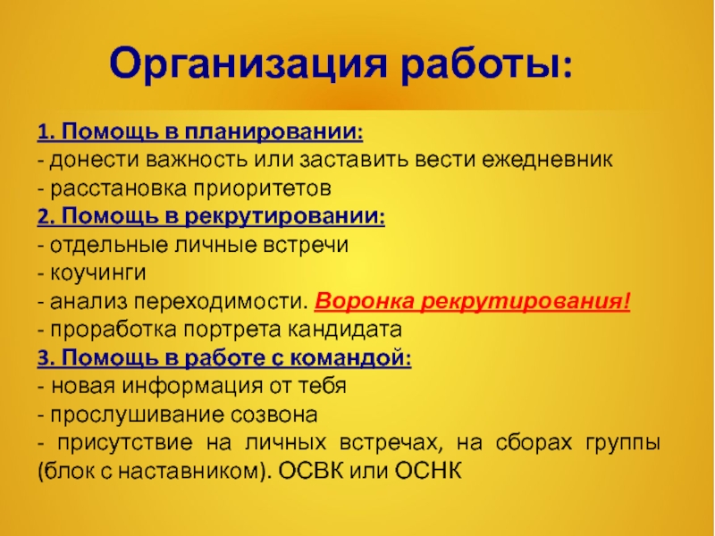 - присутствие на личных встречах, на сборах группы (блок с наставником). ОСВК или ОСНК