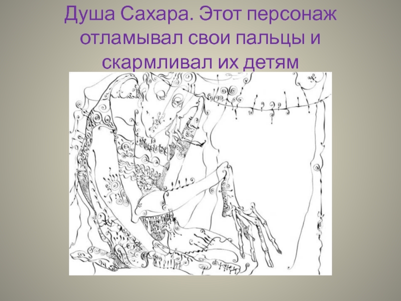Слайд 13Душа Сахара. Этот персонаж отламывал свои пальцы и скармливал их
