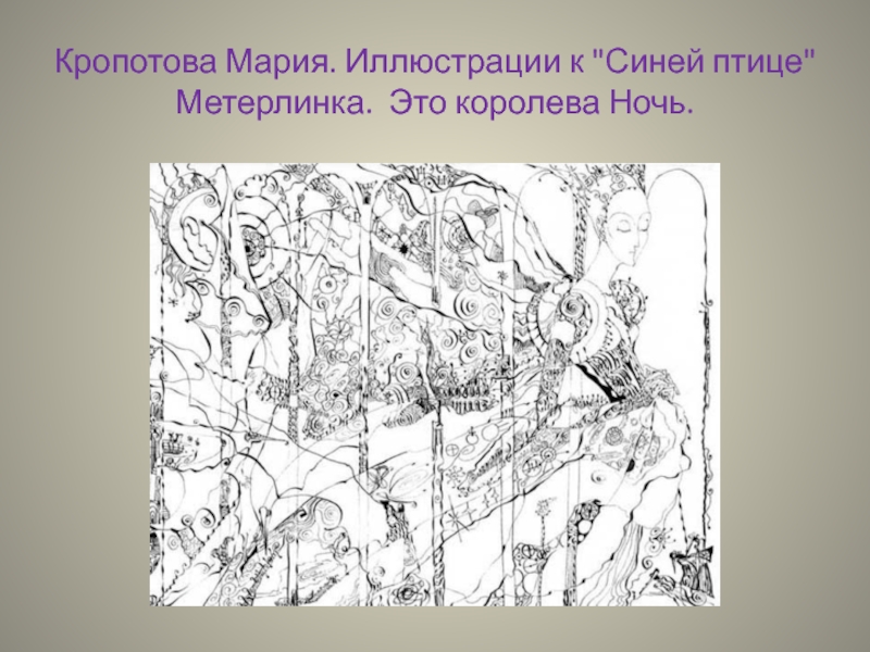 Слайд 8Кропотова Мария. Иллюстрации к "Синей птице" Метерлинка. Это королева Ночь.