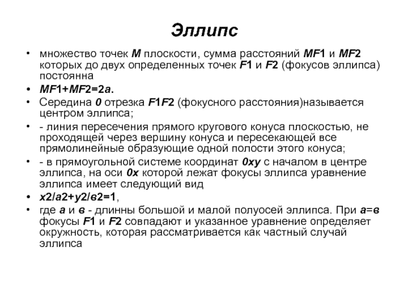 множество точек М плоскости, сумма расстояний МF1 и МF2
