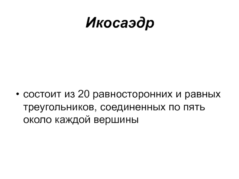 состоит из 20 равносторонних и равных треугольников, соединенных по