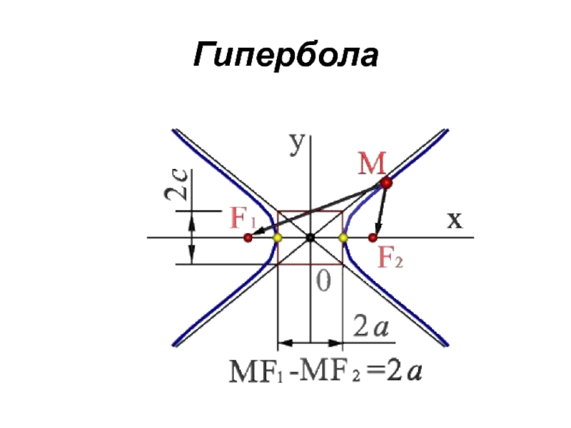 Середина 0 отрезка F1F2 (фокусного расстояния) называется центром гиперболы;