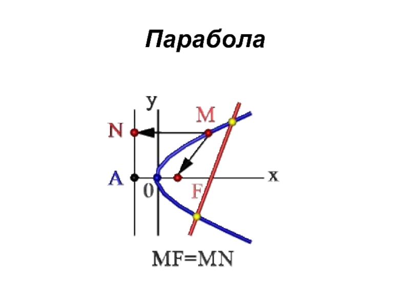 расстояние FM которых до определенной точки F этой плоскости (фокуса параболы) равно расстоянию MN до определенной прямой АN - директрисы параболы;