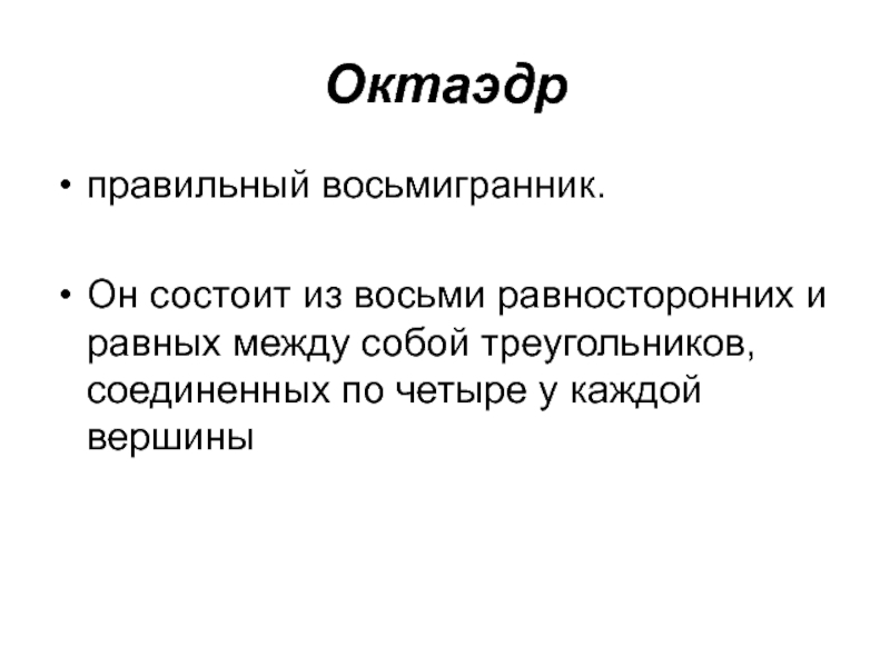 восемь пересекающихся плоскостей граней октаэдра отделяют от пространства