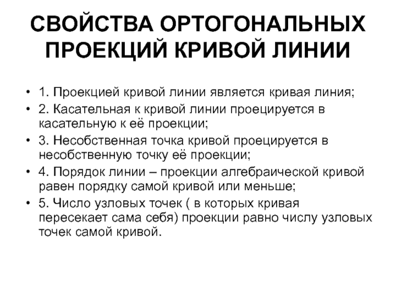 Слайд 41СВОЙСТВА ОРТОГОНАЛЬНЫХ ПРОЕКЦИЙ КРИВОЙ ЛИНИИ