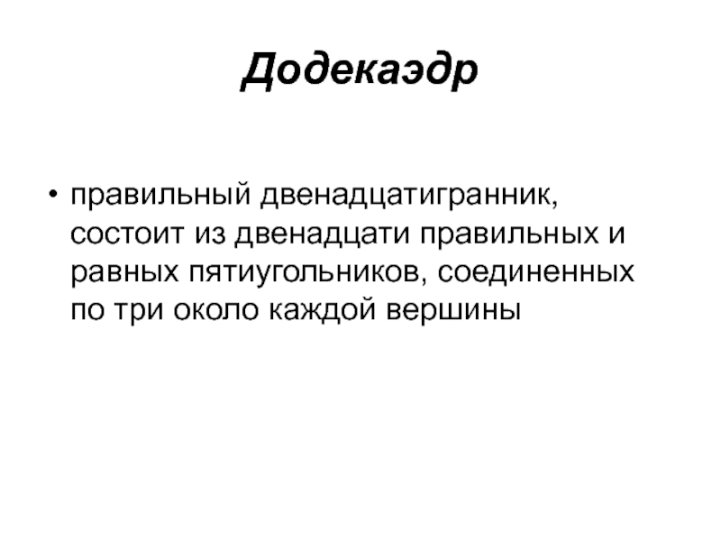 правильный двенадцатигранник, состоит из двенадцати правильных и равных пятиугольников,