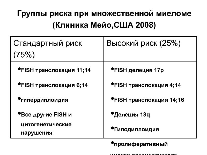 множественной миеломе ( IgG сыворотки <30 g/l, IgA <20 g/l, моноклональные цепи каппа или лямбда Ig в моче <1 g/ 24 часа)