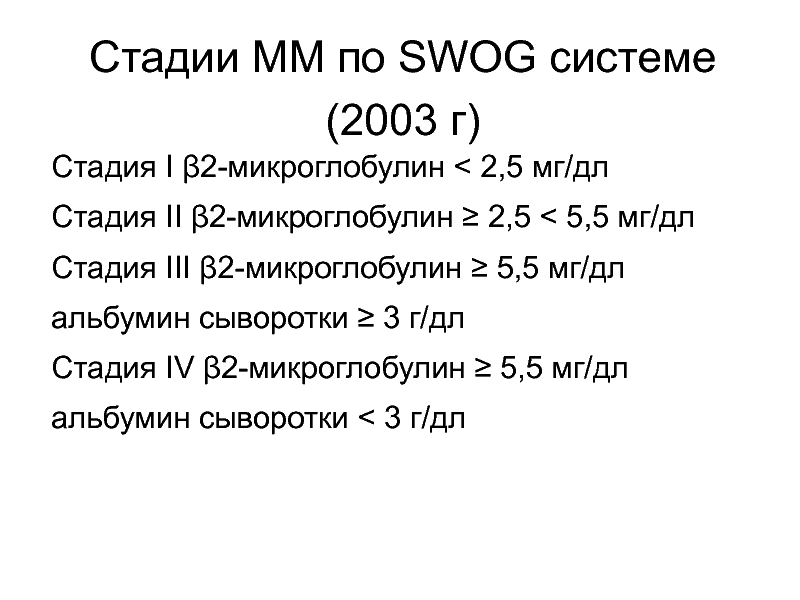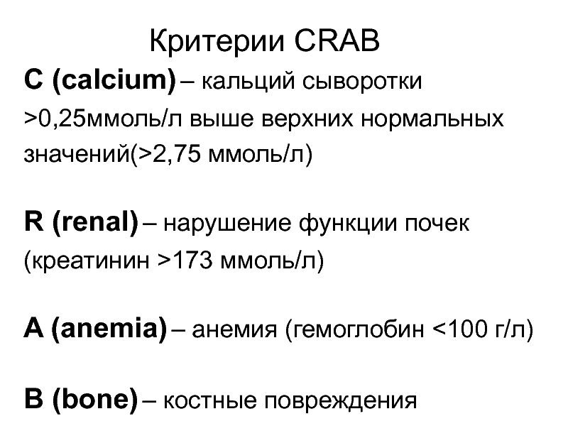 3. Отсутствуют дисфункции органов, ассоциированные с миеломой