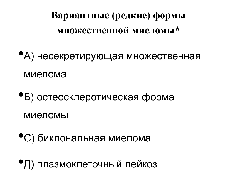 Слайд 7Вариантные (редкие) формы множественной миеломы*
