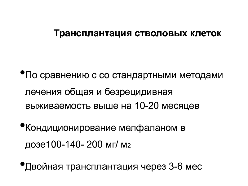 дней каждые 6 нед), мелфалан, циклофосфан в сочетании или без ГКС ( 40мг/м2), протокол М2, CHOP