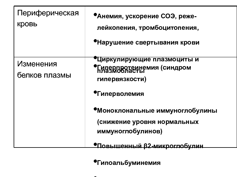 лимфоцито-плазматическая инфильтрация лимфоузлов, костного мозга или внекостных очагов.