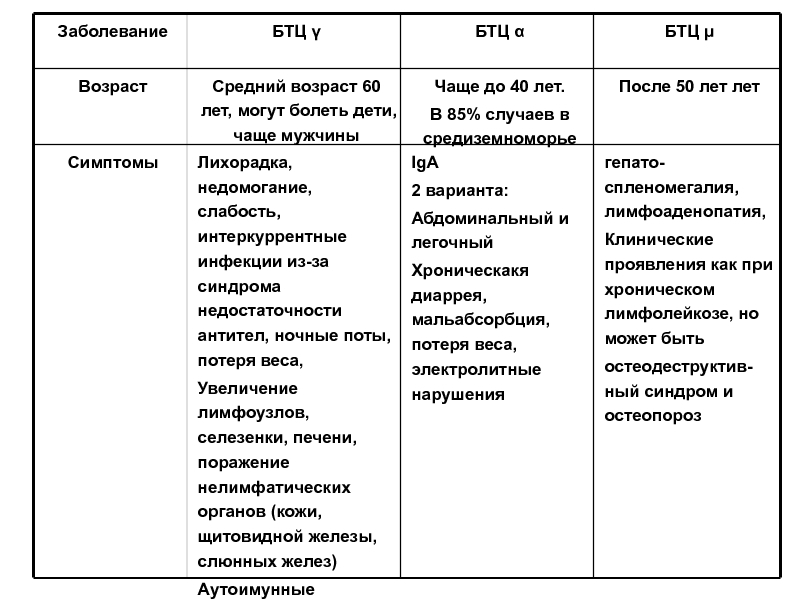 Лихорадка, недомогание, слабость, интеркуррентные инфекции из-за синдрома недостаточности антител, ночные поты, потеря веса,