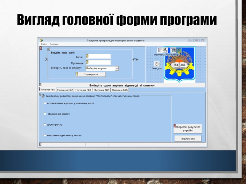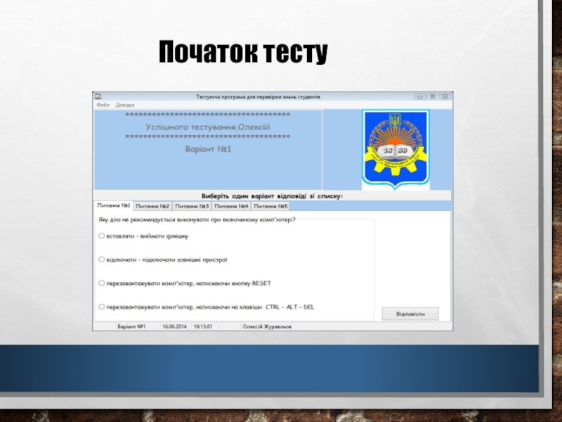 Дипломна робота на тему: «Розробка тестової програми для перевірки