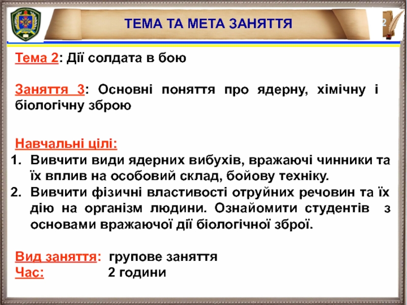 Заняття 3: Основні поняття про ядерну, хімічну і біологічну зброю