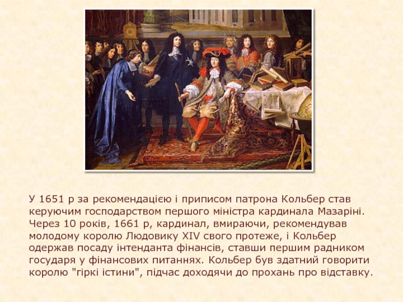 Слайд 6У 1651 р за рекомендацією і приписом патрона Кольбер став