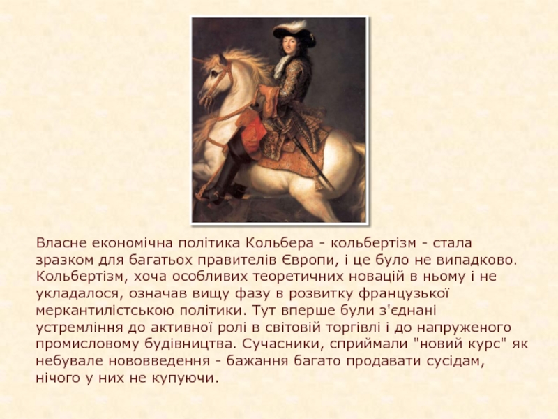 багатьох правителів Європи, і це було не випадково. Кольбертізм, хоча