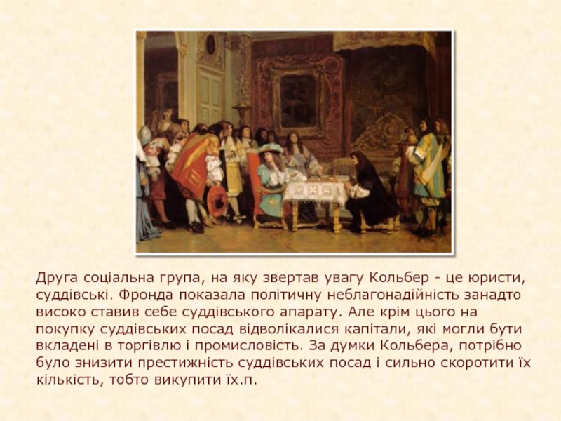 Слайд 10Друга соціальна група, на яку звертав увагу Кольбер - це