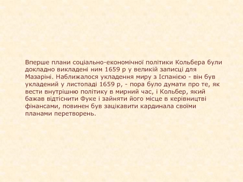 Слайд 7Вперше плани соціально-економічної політики Кольбера були докладно викладені ним 1659