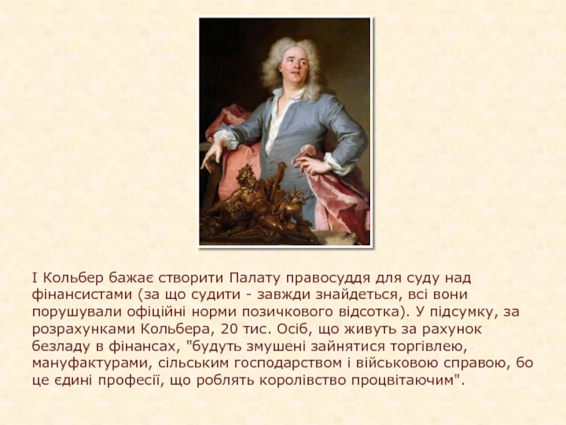 Слайд 9І Кольбер бажає створити Палату правосуддя для суду над фінансистами