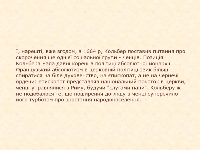 про скорочення ще однієї соціальної групи - ченців. Позиція Кольбера