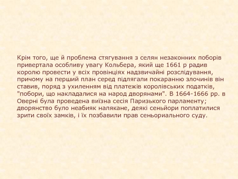 Слайд 13Крім того, ще й проблема стягування з селян незаконних поборів