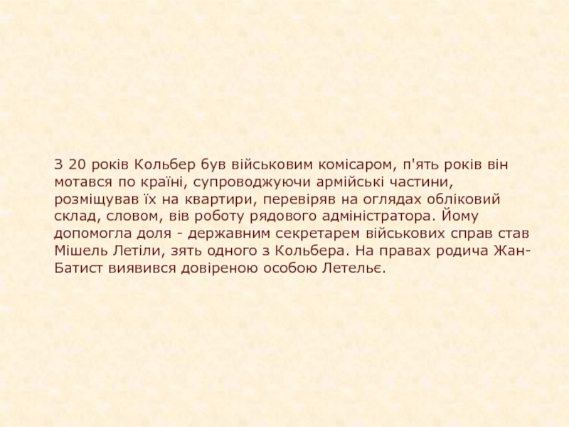 Слайд 5З 20 років Кольбер був військовим комісаром, п'ять років він