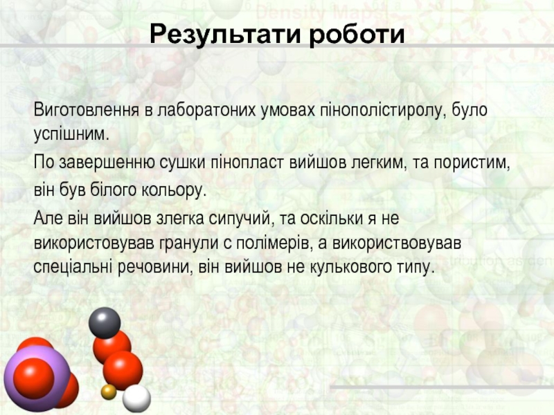 Виготовлення в лаборатоних умовах пінополістиролу, було успішним.