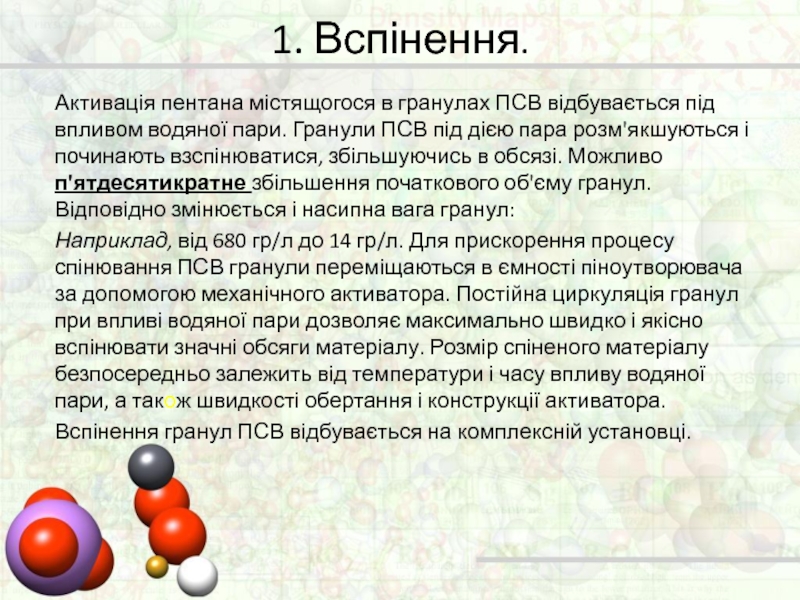 Гранули полістиролу містять легкозакипаючий компонент пентан, завдяки якому