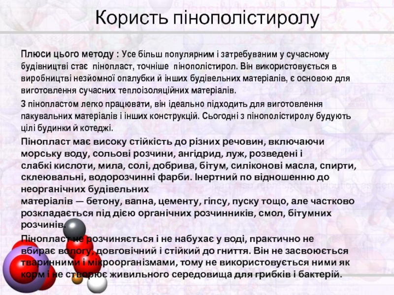 З пінопластом легко працювати, він ідеально підходить для виготовлення пакувальних матеріалів і інших конструкцій. Сьогодні з пінополістиролу будують цілі будинки й котеджі.