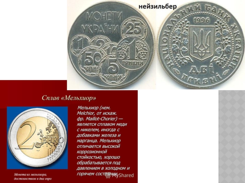 сплав меди с никелем; нейзильбер — сплав меди, никеля и цинка.