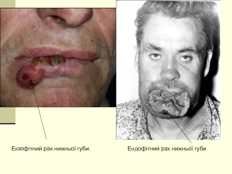 Слайд 8 Екзофітний рак нижньої губи.