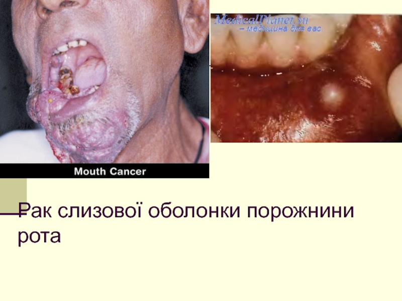 Слайд 36Рак слизової оболонки порожнини рота
