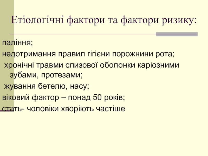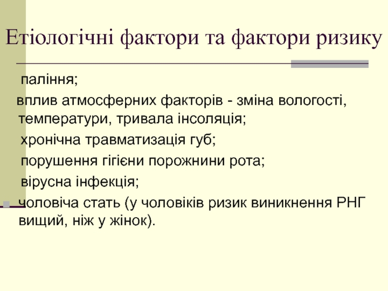 Слайд 29Етіологічні фактори та фактори ризику: