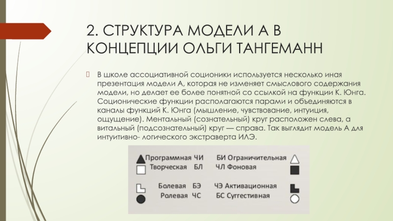 Слайд 22. СТРУКТУРА МОДЕЛИ А В КОНЦЕПЦИИ ОЛЬГИ ТАНГЕМАНН