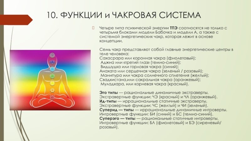 Слайд 1010. ФУНКЦИИ и ЧАКРОВАЯ СИСТЕМА