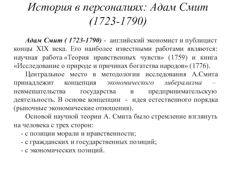 Слайд 6История в персоналиях: Адам Смит (1723-1790)