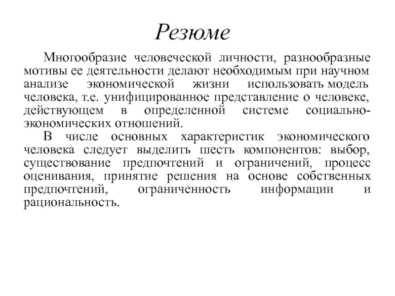 научном анализе экономической жизни использовать модель человека, т.е. унифицированное представление о человеке,