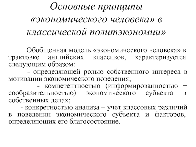 Слайд 1 Модель «экономического человека» в классической политэкономии