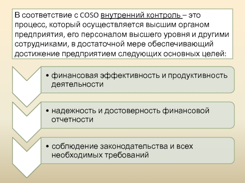 В соответствие с COSO внутренний контроль – это процесс, который осуществляется высшим органом предприятия, его персоналом