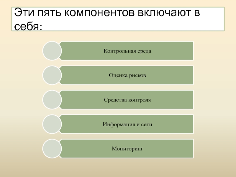 Модель внутреннего контроля COSO состоит из пяти взаимосвязанных компонентов, которые обеспечивают эффективную основу для описания и анализа