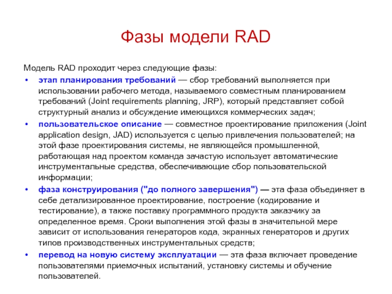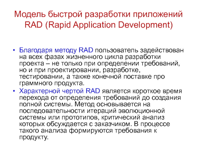Слайд 28Модель быстрой разработки приложений RAD (Rapid Application Development)